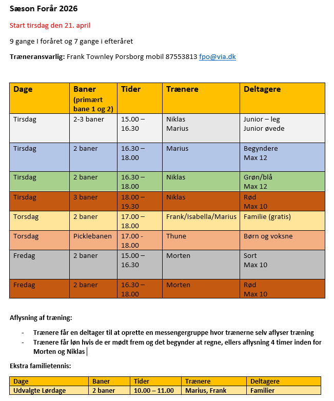 Vil du gerne spille tennis og være med til træning, skal du melde dig ind i klubben og betale kontingent, inden du kan tilmelde dig træning